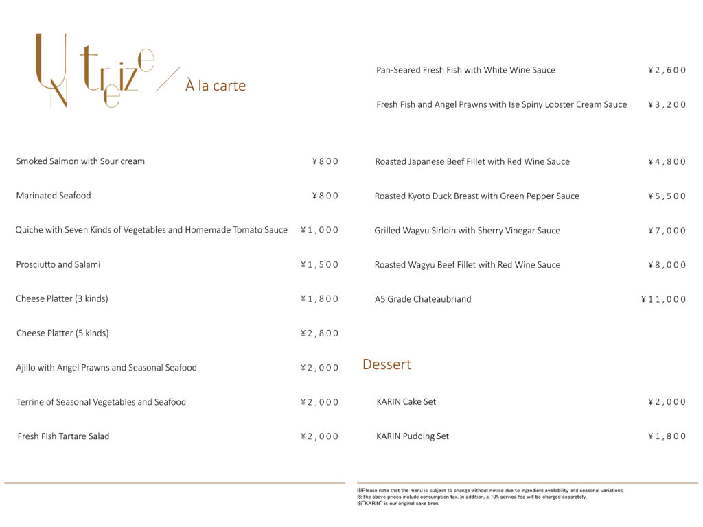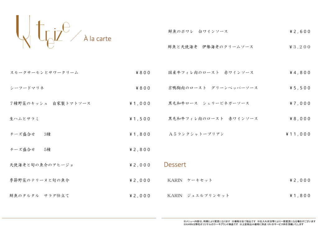 ・KARIN×un-treize 季節のデザートワゴンサービス飲み物