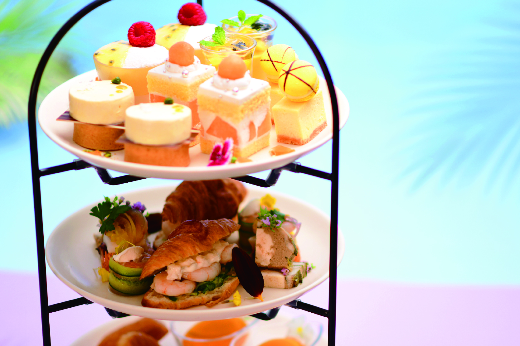 マンゴー、ライチ、パッションフルーツ…。トロピカルな果実たちを贅沢に使ったスイーツと、爽やかなセイボリーが並ぶ、 ひと皿ごとに夏が香るアフタヌーンティー。