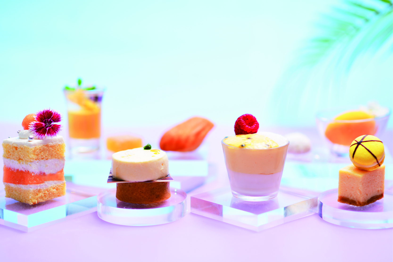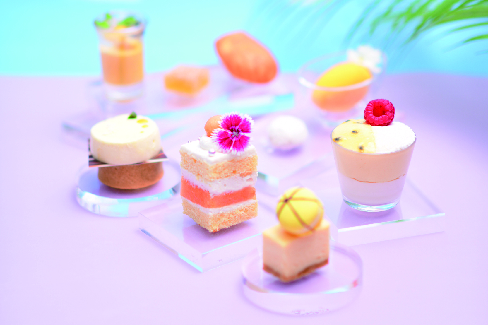 マンゴー、ライチ、パッションフルーツ…。トロピカルな果実たちを贅沢に使ったスイーツと、爽やかなセイボリーが並ぶ、 ひと皿ごとに夏が香るアフタヌーンティー。